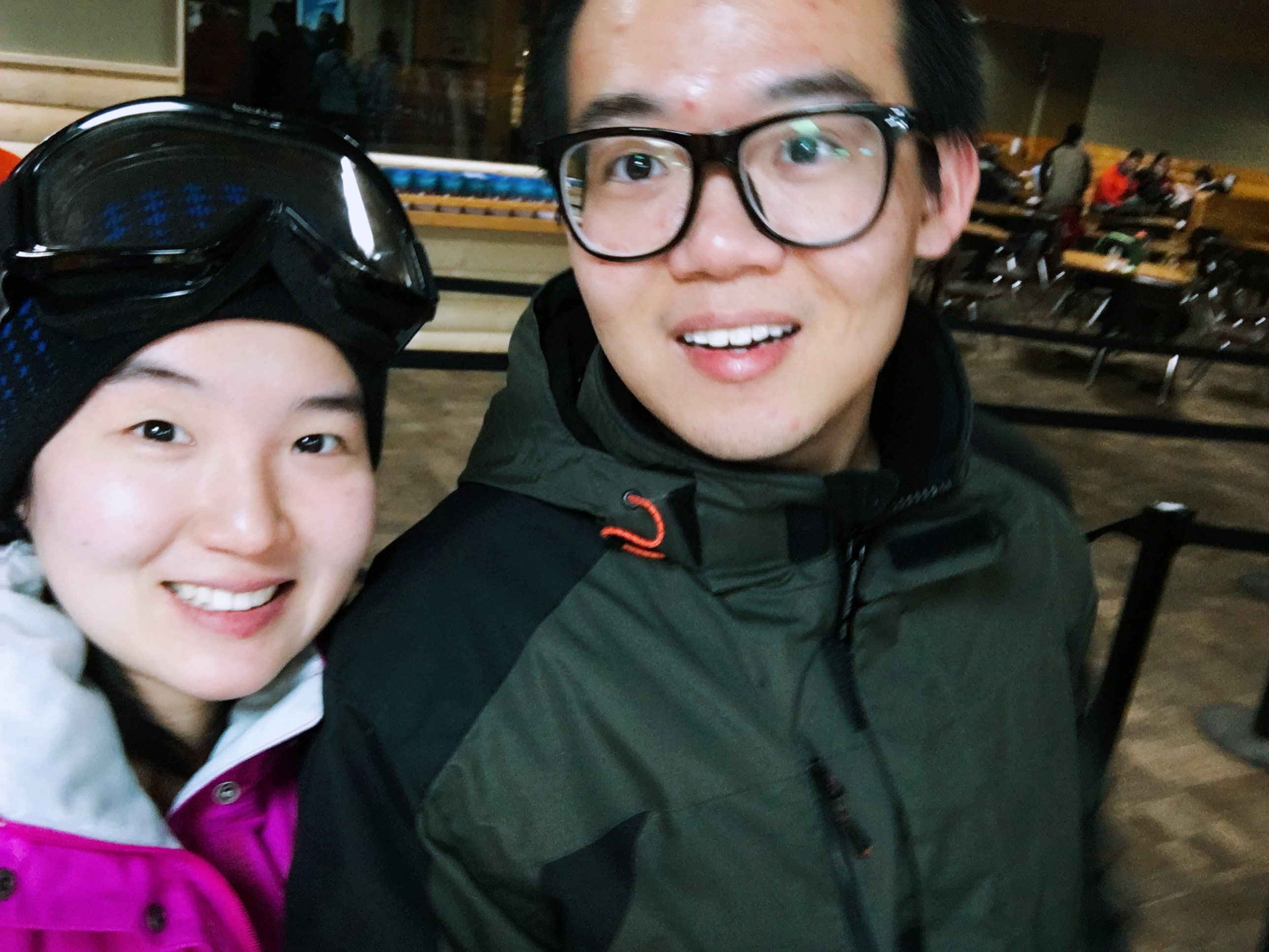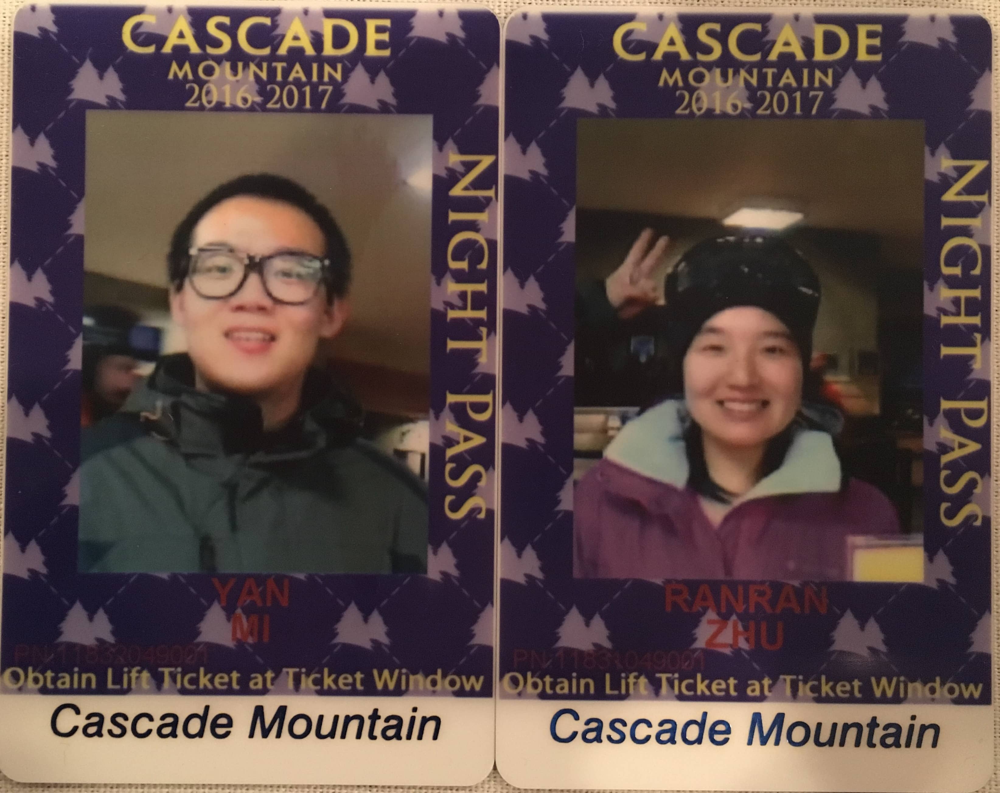 RR送给MY两张季票作为他的生日礼物,并成为他滑雪的小伙伴。MY驾驭单板,RR学习双板。2016年12月19日在零下20度的山上我们第一次上了长绿道。次年3月4日,在RR的鼓励下,我们上了黑道。Estelle gave Ryan two skiing season passes as his birthday present, and became his snow buddy. Ryan is a boarder and Estelle is a skier. We made to longest lane with “Green Circle” on Dec 19, 2016. After handling “Blue Square”, with the encouragement of Estelle, we made to “Black Diamond”on March 4 the next year.
